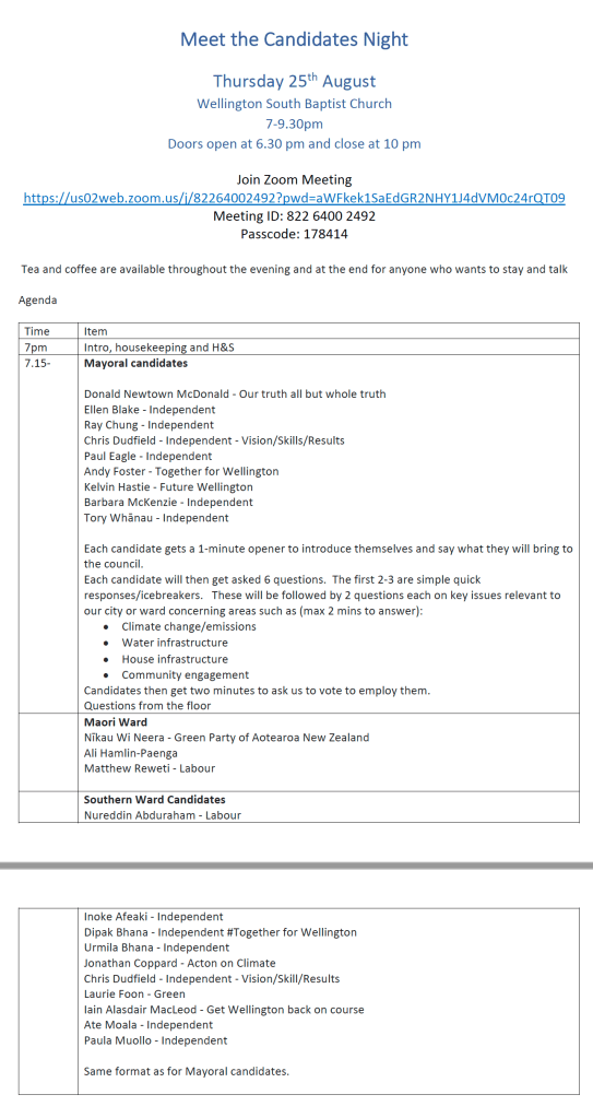Draft agenda (watch this space for further updates, we are waiting on RSVPs for just a few of the candidates):